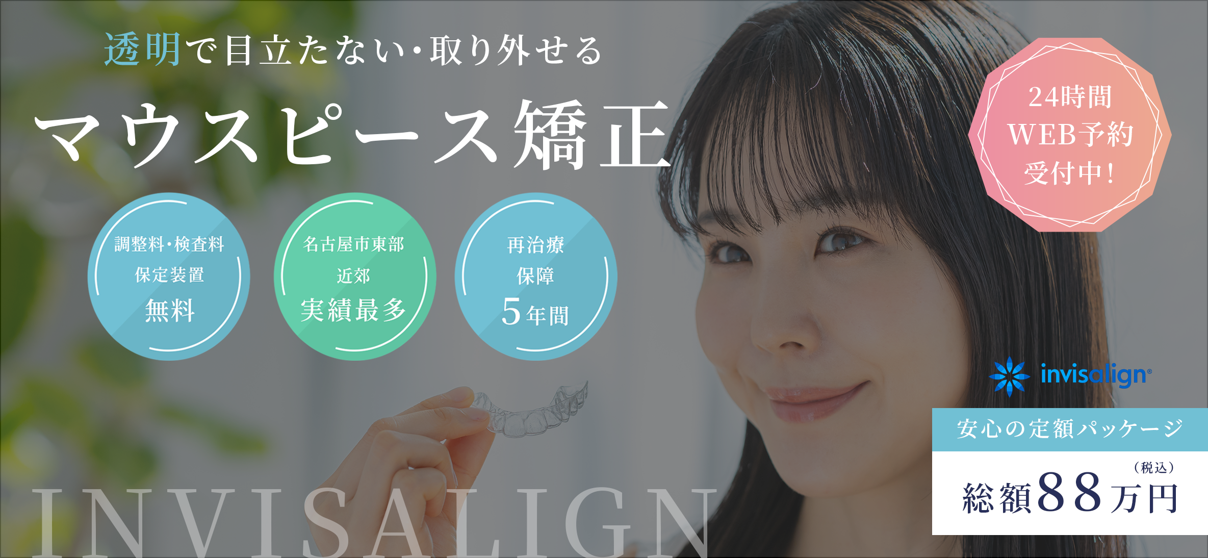 マウスピース型矯正装置は、金属の器具やワイヤーを接着しない、目立たない矯正方法です。